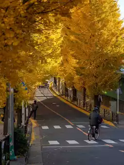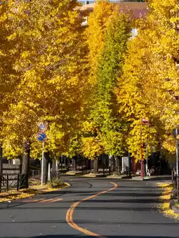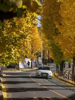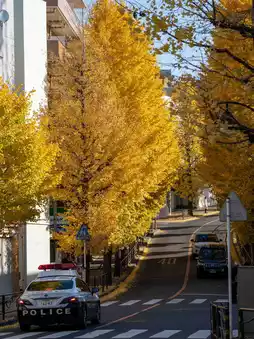 "In autumn, the Miyamaedaira area is beautifully lined with golden ginkgo trees. This spot for viewing autumn leaves spreads out amongst a quiet residential area, and time flows at a leisurely pace.