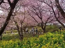 This location is famous for its Kawazu-zakura cherry blossoms, which bloom about a month earlier than those in Tokyo 💕. The best time to visit is from late February to early March. The vibrant pink blossoms set against the backdrop of Mount Fuji create a postcard-perfect scene that feels almost surreal 🗻✨.