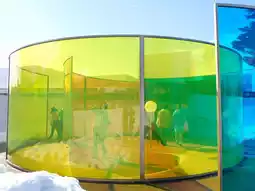 The art museum is most famous for its combination of outdoor lake and indoor space, especially the swimming pool without water. It is the art, colors and layers that turn a swimming pool into reality!