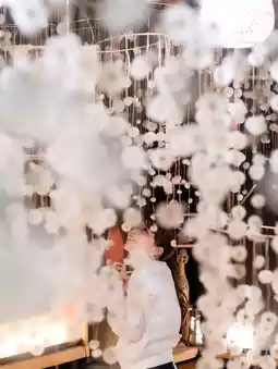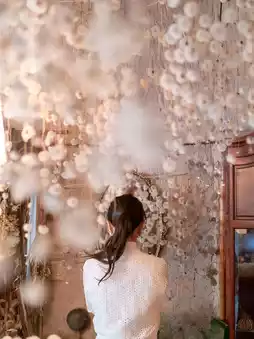 Lots of dandelion fluff hanging from the ceiling 🫧🫧🫧