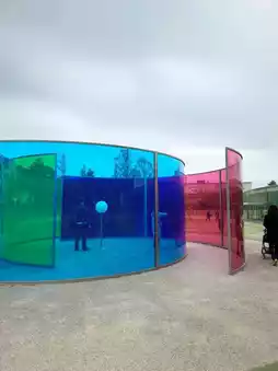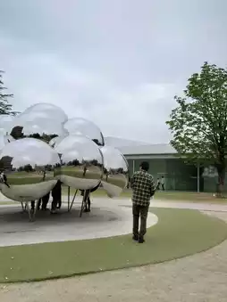 The 21st Century Art Gallery is a circular pure white building with a simple design, focusing on modern art. There are several artworks that are free to visit. There are three exhibition areas that require ticket fees.
