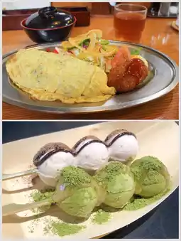 The omelet rice with crab cream croquette is incredibly delicious, so I recommend it.