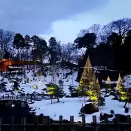 In addition to the lighting up of the three gates of Kanazawa Castle (Ishikawa Gate, Kahoku Gate, and Hashizume Gate), you can enjoy a themed illumination show accompanied by Japanese musical instruments such as the shakuhachi and koto at Gyokusen-inmaru Garden, a daimyo garden beloved by successive lords of the Kaga domain.