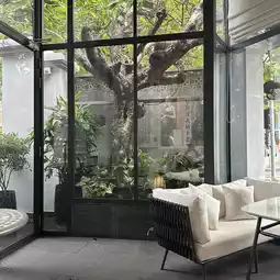 This soft serve ice cream has a sheet of gold leaf placed on top of vanilla soft serve, making it popular among tourists due to its striking appearance.