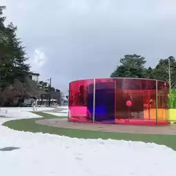 The 21st Century Museum of Contemporary Art is just over 10 minutes by bus from Kanazawa Station. The bus stop is very close, so we were able to get there without any trouble even though the ground was poor.