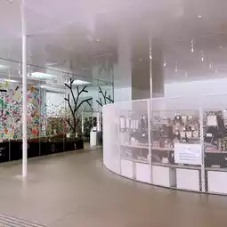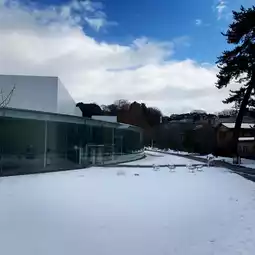 The day we visited was a sunny day between heavy snowfall. We could see both the snow and the blue sky, and enjoyed the exhibitions in the free area in a different atmosphere than usual. Since the building is open and made of glass, we were lucky to be able to enjoy the exhibitions and snow scenery from the bright interior on this day.