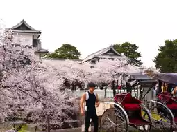 Ishikawa Gate, adjacent to Kenrokuen, is a nationally designated important cultural property and is the most popular spot. Admission to the gate is free (there is a fee to enter the towers and tenement houses beyond that). In spring, the approximately 400 cherry trees that cover the moat, standing out against the white walls of Kanazawa Castle, are a spectacular sight. It is a cherry blossom spot that is even more spectacular than Kenrokuen. The area around Ishikawa Gate, the main gate, is the most spectacular, and events are held in front of the gate and rickshaw services are also available. There is also a park outside the castle where you can rest your feet or enjoy a picnic by taking out food. At night, it is lit up, and the beauty is different from that during the day, making it truly fantastic. Location: Shosho-cho, Kanazawa City, Ishikawa Prefecture Opening hours: 7:00-18:00 (March 1st-October 15th)/ 8:00-17:00 (10/16-end of February)
