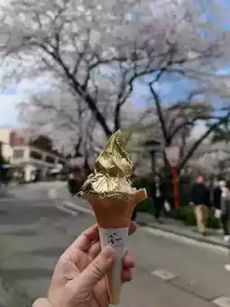 Highly recommend to try their golden leaf ice cream under the sakura tree.