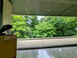 You can enjoy exquisite cakes that look like works of art while admiring the greenery through the large glass windows.