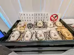 Noh masks are displayed on the first floor, where you can try on masks and Noh costumes and take photos. The second floor is a special exhibition room where photos are not allowed. The third floor is only used for workspace activities such as photography talk events, photography poems, and Noh mask making experiences.
