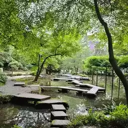 Another highlight: Also known as the "Garden of Musical Instruments," you can enjoy the trees reflected in the pond, along with ancient Bugaku instruments, and the garden shaped like an instrument.