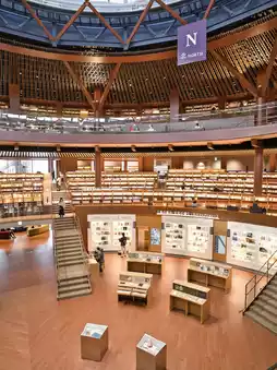 Its unique spaceship-like exterior and circular "forest of books" amaze and fascinate visitors.