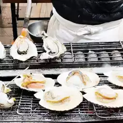 I grilled scallops in front of the store and enjoyed a stroll around Omicho Market while sipping local Hokuriku sake inside.