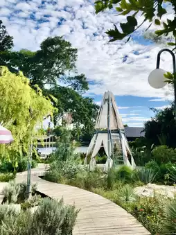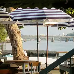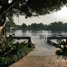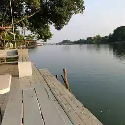 Great atmosphere, sit back and relax by the Kwai River, sip coffee or delicious drinks, and see the bridge clearly