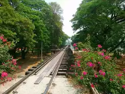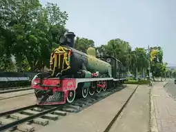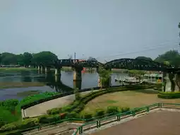 .. In addition to visiting the Bridge on the River Kwai, tourists also You can also walk across to see the Guanyin Bodhisattva temple, see the old locomotives used in building the railway in front of the train station, and take a photo at the Japanese military cemetery.