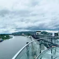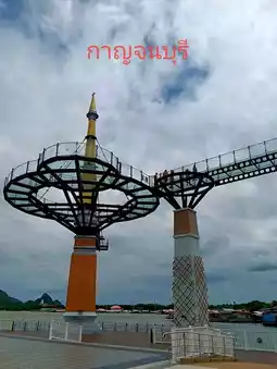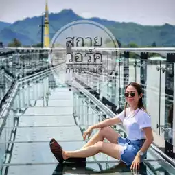Kanchanaburi Skywalk is a new landmark in Kanchanaburi province, located along the banks of the River Kwai. There is an entrance fee and a fee for shoe covers to walk on the glass floor. Shoes are stored in lockers, and after the visit, you can either take the shoe covers home for future use or leave them at the designated drop-off point before exiting.