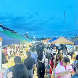 After enjoying the evening view from the Skywalk, you can explore and find something to eat at the Song Khwae Walking Street Market, which is located just below the Skywalk. The market opens in the evening from 4 PM to 10 PM.