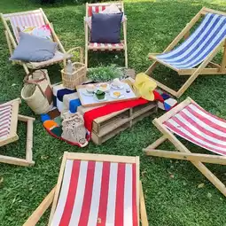 Various photo spots, whether it's a wooden table in the middle of the garden or a colorful beach chair