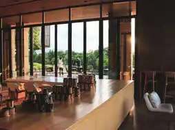 Din Cafe is a luxurious cafe that offers a relaxing experience amidst beautiful and peaceful nature. 🌳✨ It is located on the banks of the Kwai River in Kanchanaburi Province. It offers panoramic views of the river and mountains that make you feel like you have escaped from the hustle and bustle of everyday life.