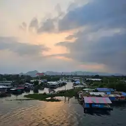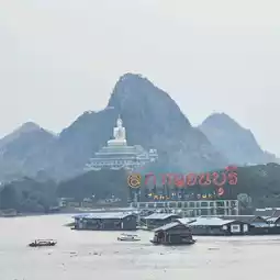 The Skywalk is about 12 meters high and 150 meters long, not very long, but the glass on top is very clear because it was just completed. The view from the top is the view of the raft community village by the river. Looking far away, you will see Wat Tham Khao Laem, a large white Buddha statue. If the weather is good, you will be able to see Wat Tham Suea. Do not bring anything up. There are lockers for storing items downstairs for free.