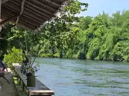 This is a cafe located in Mueang Kanchanaburi District, located on the banks of the Kwai Yai River, surrounded by nature. The atmosphere is very good, quiet, and suitable for relaxation. There is elephant dung coffee for sale in shots. There is a baby elephant at the entrance. We can bring food to feed it.
