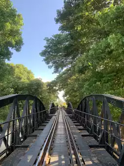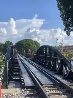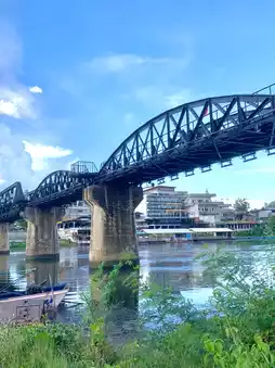 The Bridge on the River Kwai is a large bridge over the Kwai River with a semicircular steel structure, alternating with a truss structure and reinforced concrete piers. It is located in Tha Makham Subdistrict, Mueang Kanchanaburi District, Kanchanaburi Province, north of the city. It is currently used as a route for the Thonburi - Namtok Railway or the Death Railway. In the past, the weather was very hot when we went, but it was beautiful. Anyone who goes to visit, I recommend the evening when the bridge will have beautiful lights on. #VisitKanchanaburi #BridgeOnTheRiverKwai