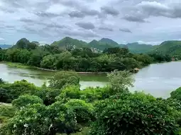 Across the area, a glass-bottomed bridge called the Skywalk is a new landmark, offering a viewpoint over all three rivers. If you look closely, you'll see the river has two colors. Along the banks, there are raft houses and a street at Pak Phraek, a public park in front of the city.