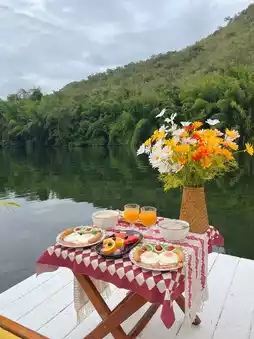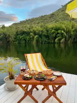 The mountain and river views are incredibly healing. The atmosphere is great. 🍃🫶🏻