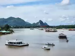 The Skywalk in Kanchanaburi is located along the Khwae Yai River. Its highlight is a glass walkway extending over 150 meters above the river, offering panoramic views of Kanchanaburi city and the surrounding mountains in a stunning 360-degree perspective. The scenery is especially breathtaking during sunrise and sunset when the light reflects off the water. For those seeking a mix of mild thrills and awe-inspiring sights, this is a must-visit destination. Here, you can enjoy beautiful views and capture chic photo spots.
