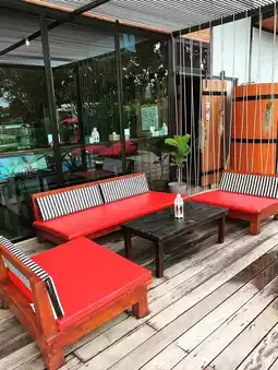 ..This place is both an accommodation and a cafe, perfect for taking photos in a camper-style atmosphere. Located right on the Kwai Noi River, it offers a stunning river view. It's only 20 minutes from the city center, but don't worry about the inconvenience of camping. This place has it all: a cafe, restaurant, swimming pool, clean and new bathrooms, and even a BBQ set for a relaxing evening by the Kwai Noi River. 🍢