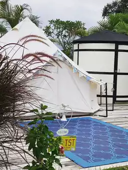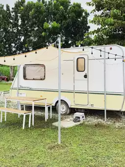As mentioned, the owner loves camping in their motorhome. Those who want to park their own motorhome can access The Campster, which provides water and electricity. If you don't have a motorhome but want to experience the camper life, they also have motorhomes available. If you'd like to sleep in a tent, they have cute, brand-new tents with private bathrooms. 🚌
