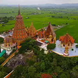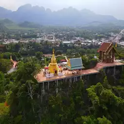 Before returning, on my last day, I stopped at Wat Tham Suea to enjoy a bird's-eye view of the lush rice fields and the winding river below. The view from the temple was so beautiful I had to keep taking photos. It was the perfect way to end my trip.