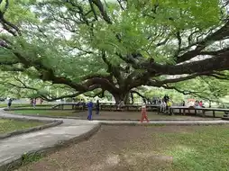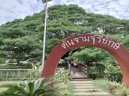 Today, we will take you to check in at the giant rain tree. 😃📍💗🫶🏻🌳 Located in Ban Khao Tok, a farming village, Ko Samrong Subdistrict, Mueang Kanchanaburi District, Kanchanaburi Province, it is another highlight that tourists like to come and see the grandeur of this giant rain tree. This giant rain tree is over 100 years old and can be hugged by 10 people. The bush that blooms is over 25 meters long, about 50 meters in diameter, and over 20 meters high. Currently, it is very difficult to find a tree this large.
