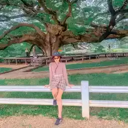 Another recommended place when visiting Kanchanaburi is this place, the giant rain tree. Another important landmark of Kanchanaburi, a wooden bridge has been built around the tree to prevent tourists from stepping on the tree's roots. This is because the tree is over 100 years old. The height from the ground to the top is 20 meters. The area of the bush is about 1 rai, 2 ngan, and 4 wa. It is difficult to find such a large tree these days. When you arrive at the rain tree, there are several parking spots. There is also an area selling souvenirs and local products from the community. There is no entrance fee. #VisitKanchanaburi #GiantRainTree