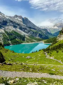 Tucked deep in the Swiss Alps, there’s a lake so blue it looks unreal — welcome to Oeschinen Lake. A place where time slows down, and the mountains whisper in silence. Add this to your bucket list before the crowds do.”