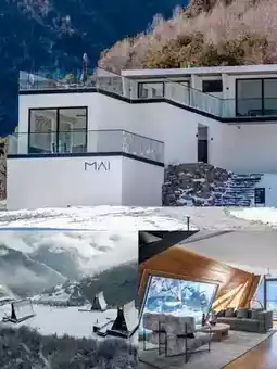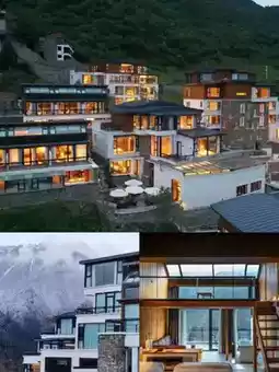 The secluded hotel located on a cliff at an altitude of 3180 meters, facing the most famous Siguniang Mountain in Western Sichuan, 360° viewing, cliff swimming pool, light and shadow tunnel, sky gate