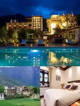 Located in the ancient Zhonglu Tibetan Village ancient watchtower group, Tibetan private manor style, the hotel has characteristic watchtowers, exquisite gardens and outdoor constant temperature swimming pools, it is a pet-friendly hotel