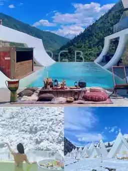 Snow mountain hot spring theme, each room is equipped with a natural hot spring pool, there are also art & library, snow mountain view restaurant, infinity pool, cotton castle wild hot spring pool and other entertainment facilities