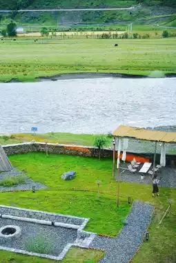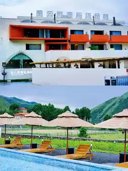 📍 Along the winding path, when Miyun Luxurious Private Hot Spring Inn comes into view, it feels like stepping into a dreamlike world. The inn's exterior blends local Tibetan style with modern elements, unique yet harmonious. The wooden structure and stone piles give a rustic and solid texture.