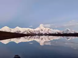 Lengga Tso is the best of Western Sichuan, perfectly interpreting the beauty of symmetry. The main peak is Gongga Mountain, known as the "King of Sichuan Mountains," and the surrounding peaks are lined up like guardians, creating a beautiful mountain shape. The mountain presents different colors at different times: passionate blue and white, charming rose gold, and cool silver-gray, showing its multifaceted personality to the world. However, the more extreme something is, the harder it is to obtain. To meet Lengga Tso's peak, you need: clear, cloudless, and windless weather, driving over 40 km on a gravel road with potholes at the risk of a flat tire, enduring cold, hunger, and altitude sickness, having the courage to ride a horse on bumpy and rugged mountain roads, or having good physical strength to hike on steep gravel and grass roads - we hiked down the mountain in the dark, and the administrator told us to hurry because there were wolves around.