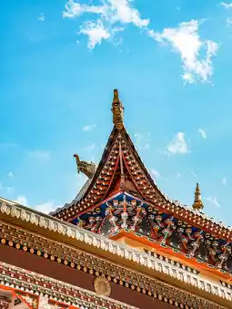 Strolling through the temple, you can see lamas chanting scriptures, practicing, or busy with temple affairs. If you're lucky, you can also listen to their chanting, the low and melodious voices, like Sanskrit sounds traveling through time, washing away the dust of the soul. The Mahavira Hall is solemn and majestic, with the golden Buddha statue inside shining brightly, its compassionate gaze seemingly watching over all things in the world. Here, you can pray devoutly and feel the power of faith.