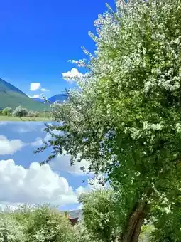 - **Time**: From the end of May to mid-June, white Ose flowers like alpine pear blossoms are in full bloom, matched with highland barley fields and Tibetan dwellings, like an oil painting.