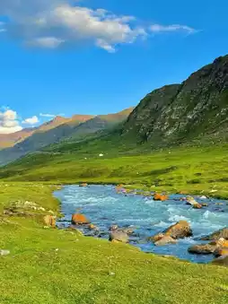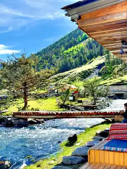 2. Riche Village: Barley fields, streams, and distant snow mountains complement each other, with fresh green in May and golden hues in October, full of a Studio Ghibli comic vibe. The prayer flag clusters at the village entrance are perfect for photos. The popular homestay "Songdun Niji" is here, where you can have afternoon tea and stay overnight, with swings and tents adding to the atmosphere.