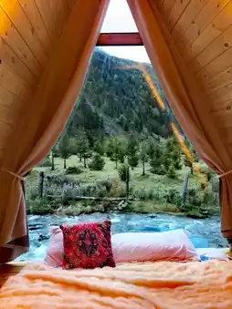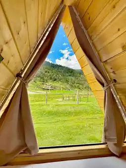 The standalone wooden cabins look like they came straight out of a fairy tale, with floor-to-ceiling windows and terraces offering panoramic views of forests, meadows, and streams🌳 The rooms have floor heating, electric blankets, and humidifiers for a cozy sleep. The large scenic terrace and panoramic windows let you gaze at the starry sky at night. There’s also a projector in the room for a super comfy movie night~ The hotel has a campsite for overnight camping, and public areas for BBQs and picnics. The owner is very enthusiastic and will help plan routes and guide you to off-the-beaten-path viewpoints.