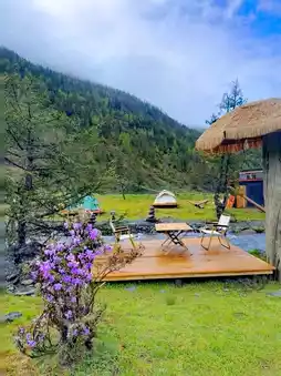 This homestay is literally a dream come true! Open the window to barley fields, yaks, and lambs, plus picket fences—every shot looks like a masterpiece painting🖼️ There’s also a snow mountain wooden cabin café, camping on the lawn, and bonfires under the starry sky—super romantic~ The homestay even has a private zoo where you can pet animals, and Tibetan costume photoshoots with great atmosphere. From July to September, you can enjoy mushroom picking!