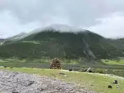 Even in summer, Muya Holy Land (木雅圣地) surprises with snow-dusted grasslands as you near the peak. Our bus had to stop short due to slippery roads—but that made the walk up all the more magical. 🌨️