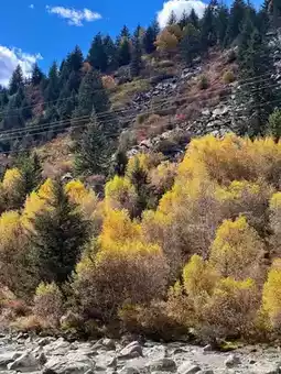 When you come to Xinduqiao, I highly recommend driving along this highway. The autumn scenery along the way is truly legendary! Besides the well-known "Ten-Mile Gallery," continuing towards Tagong is also absolutely stunning. The hillsides on both sides are covered with colorful forests, not just yellow trees, but also red, orange, and green ones... A creek flows at the foot of the hills, it’s like a fairy tale!