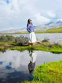 At these times, the lake surface is as calm as a giant mirror, perfectly reflecting the majestic snow-capped Bijia Mountain range in the distance, as if it exists in a parallel world!🗻➡️🌊
