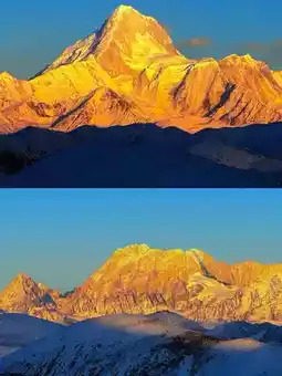Zuoruo Lake: A rarely visited highland lake on a ridge in the western part of Gongga Mountain. It is only 15km in a straight line from Gongga's main peak, closer than Lenggacuo. Here you can encounter the beauty of a sunset golden mountain.