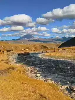 As the wheels roll over the creekside gravel, the entire valley bursts forth like a spilled palette—every frame here is a masterpiece painted by nature, making you unable to hold back your exclamations of awe!